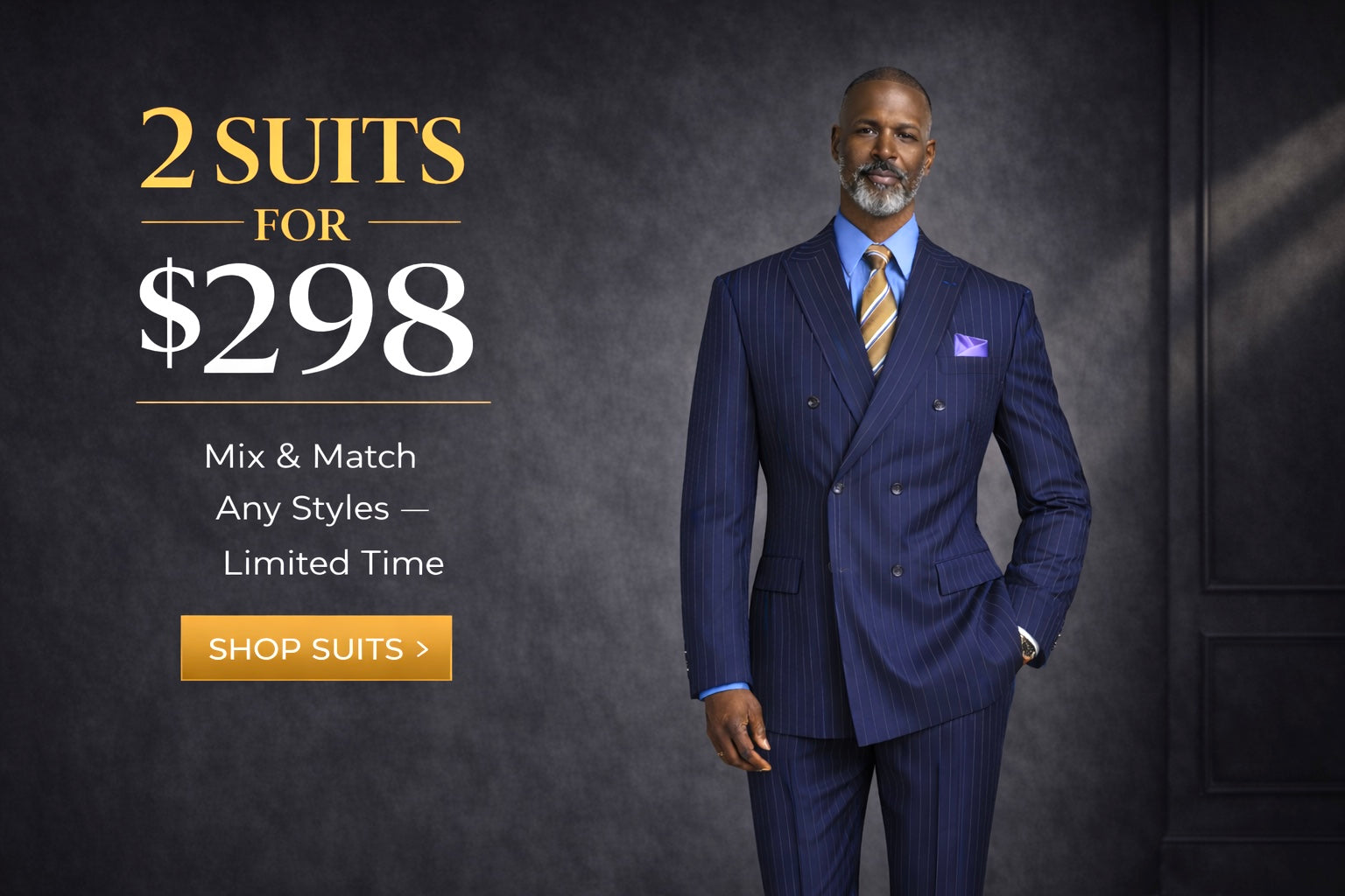 Men’s Double Breasted Pinstripe Suit – Navy Relaxed Fit 2 Piece FDSS