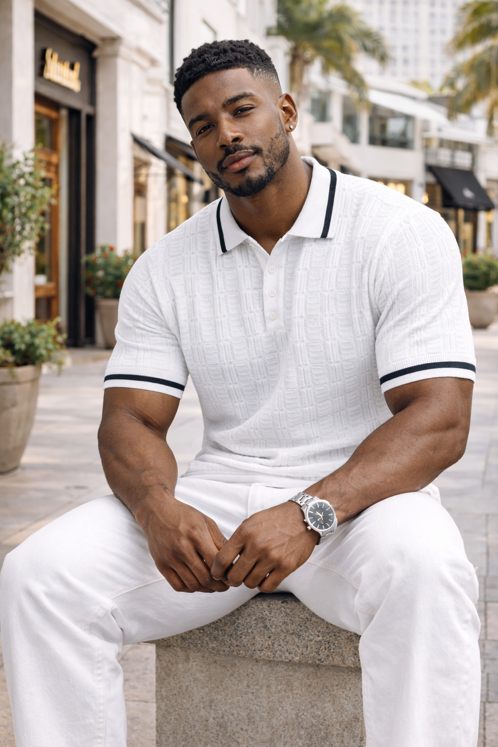 Inserch Men’s Short Sleeve Mock Neck Sweater - White