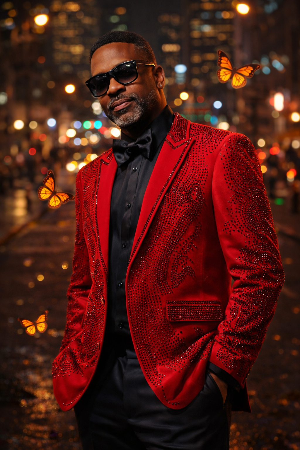 Inserch Men’s Velveteen Suede Military Blazer BL-569 Red