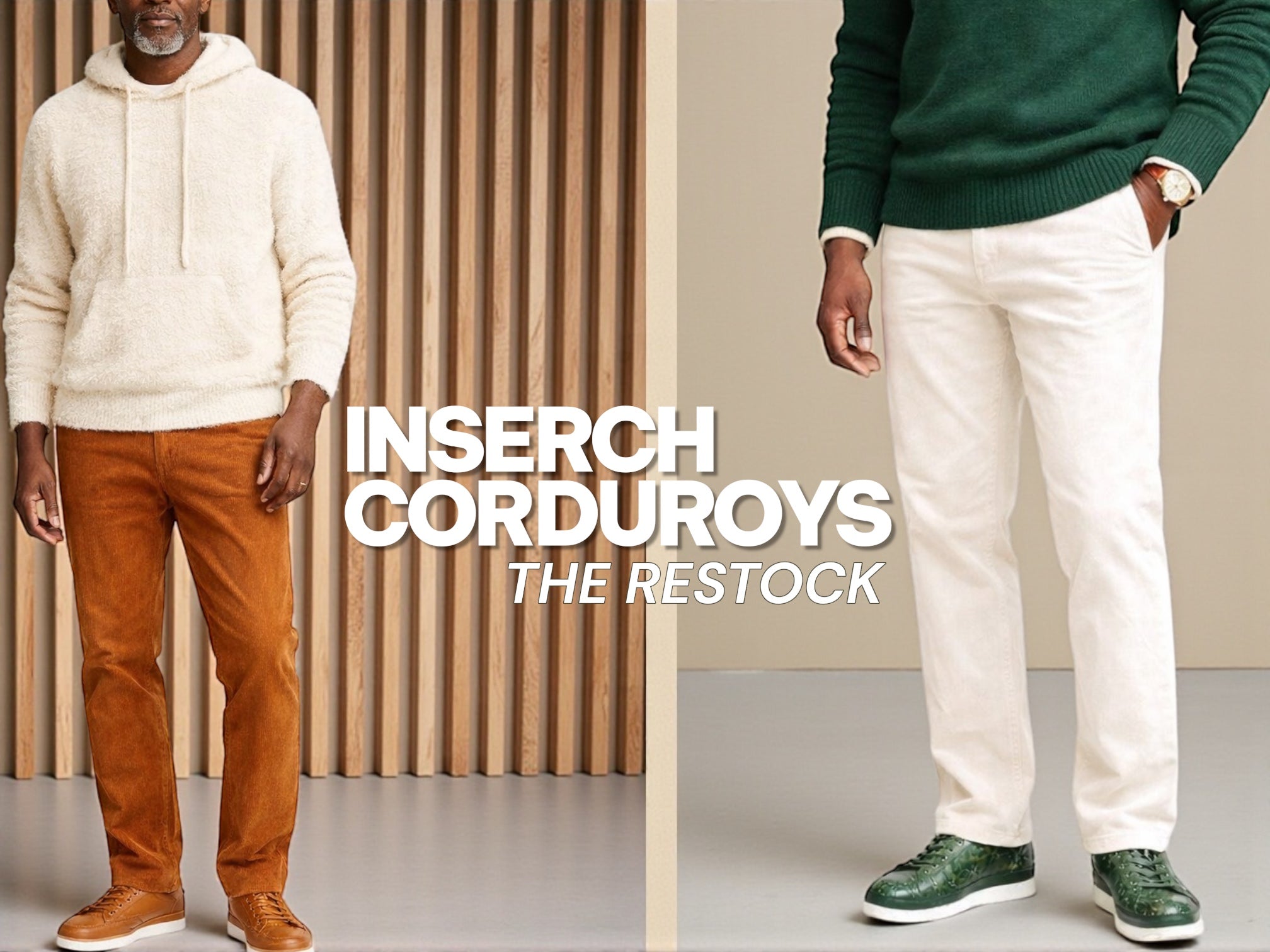 Inserch Men’s 100% Cotton Flat Front Corduroy Pants Bone P3103