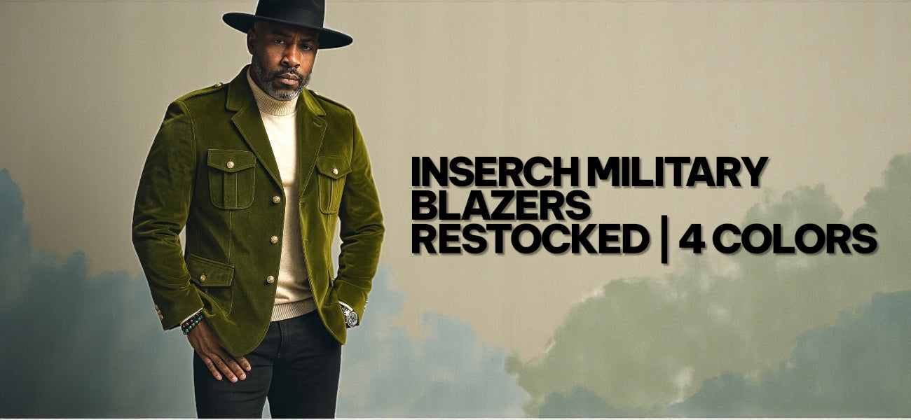 Inserch Men’s Velveteen Suede Military Blazer BL-569 Black