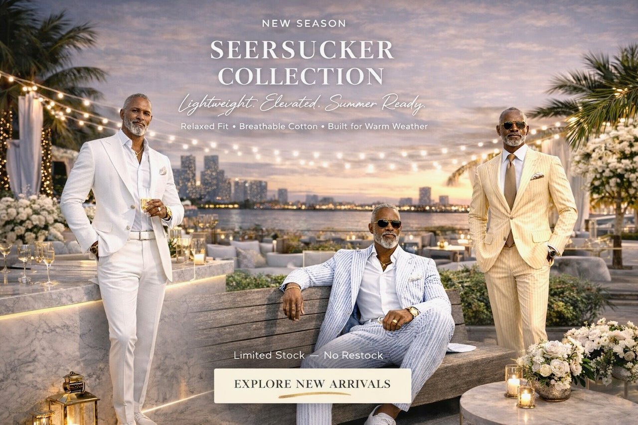 Inserch Men’s Premium Cotton Seersucker Stripe Suit – Black