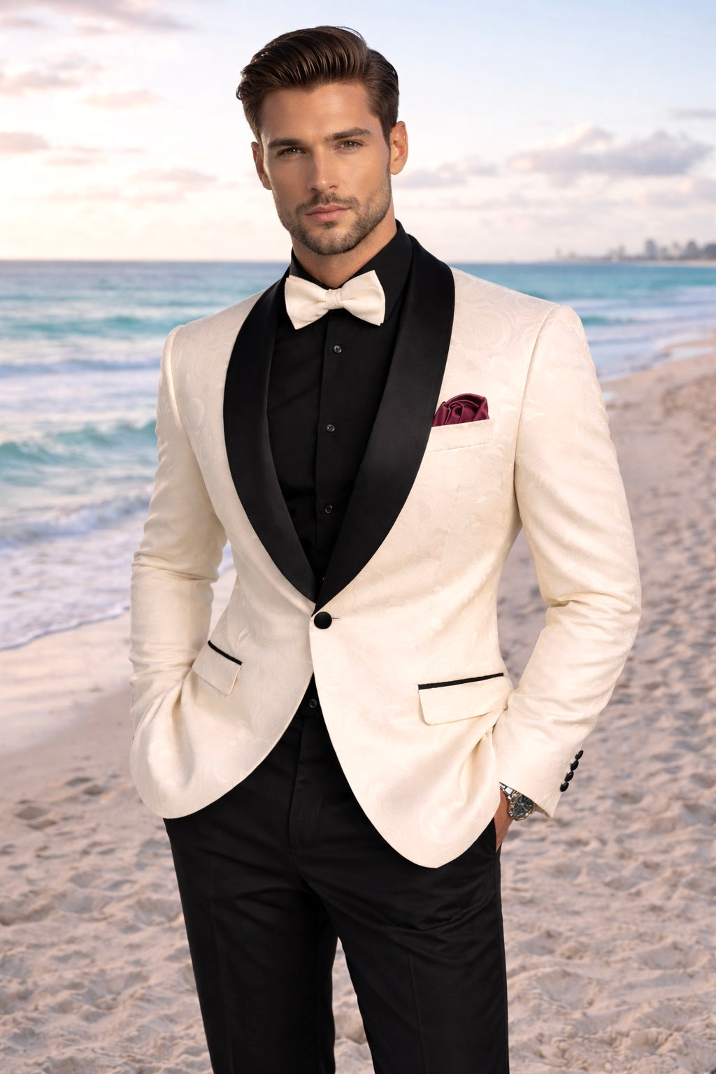 Rossi Man White Double Breasted Men's Modern Slim Fit Suit