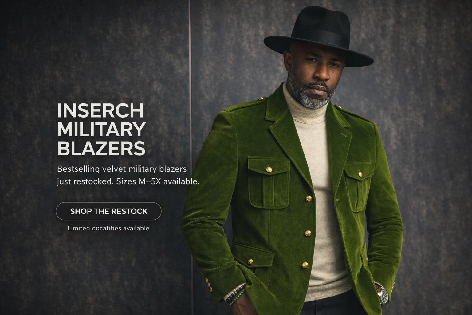 Inserch Men’s Velveteen Suede Military Blazer BL-569 Green