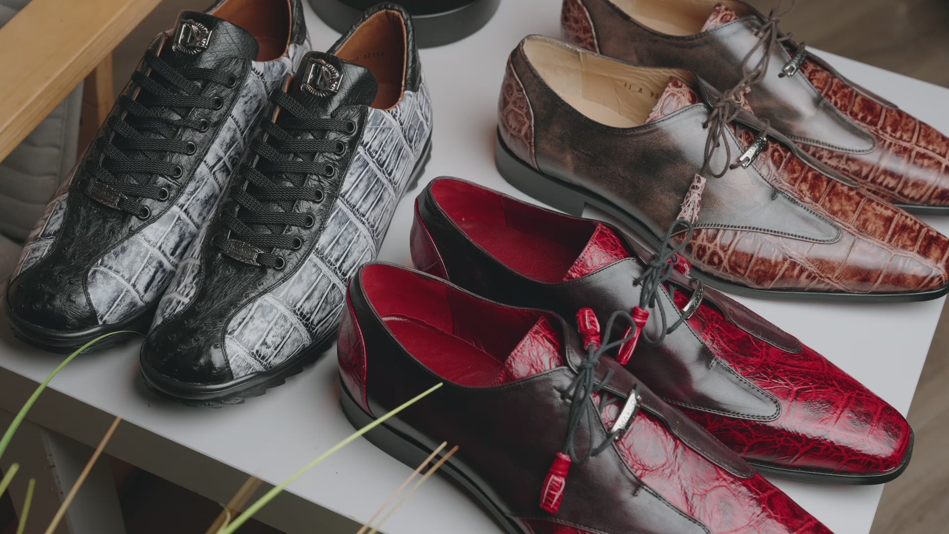 Giovanni Timo Men’s Croco Print Leather Sneaker - Red