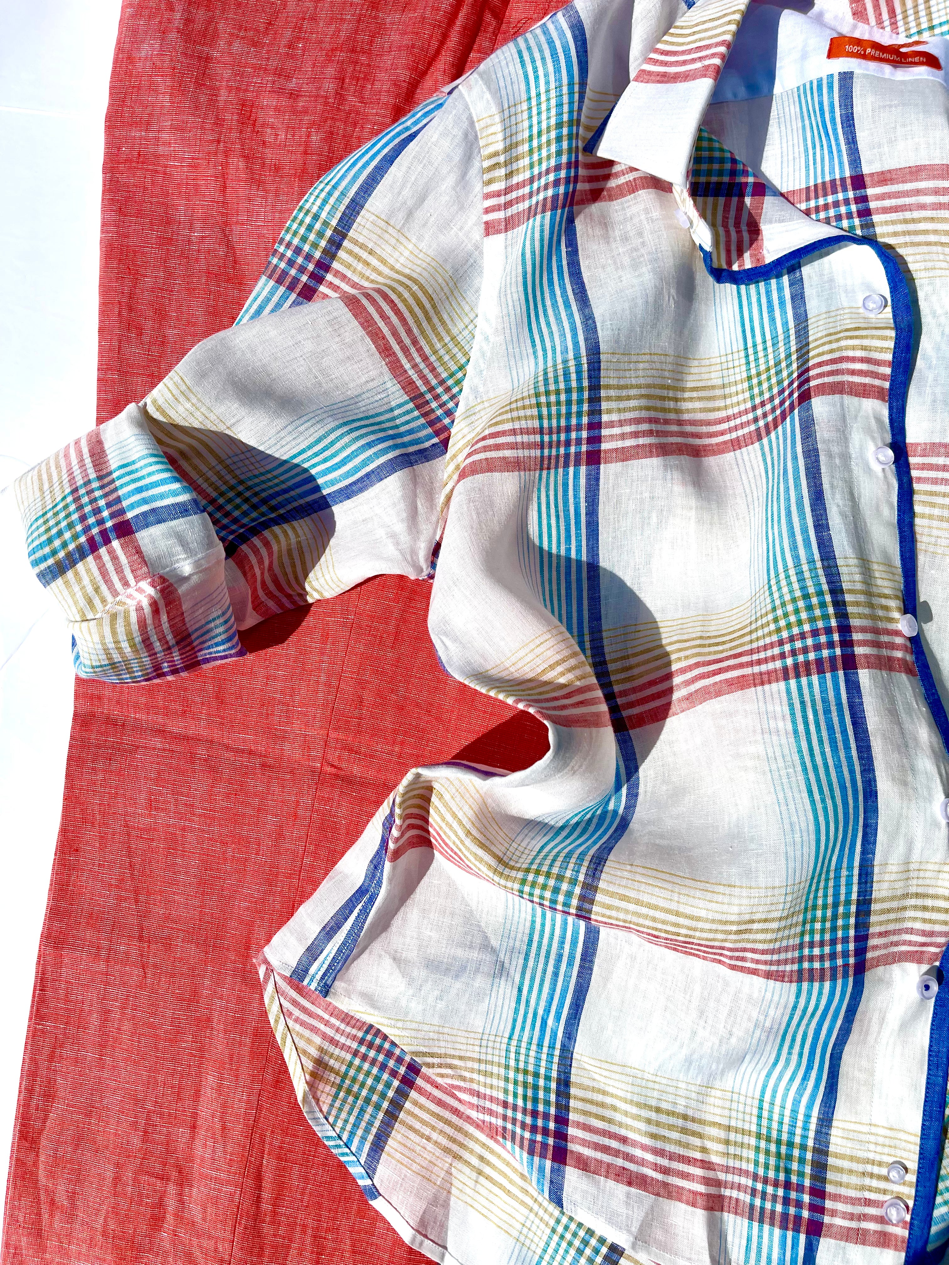 Inserch Linen Roll Up Shirt (56-White Multi)