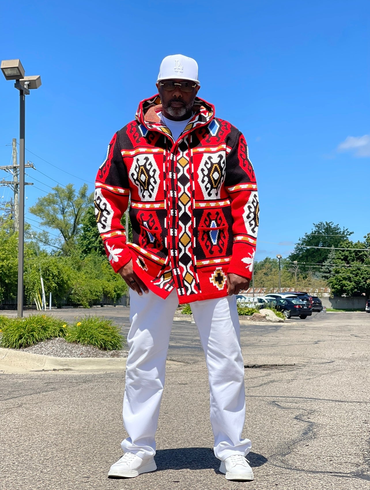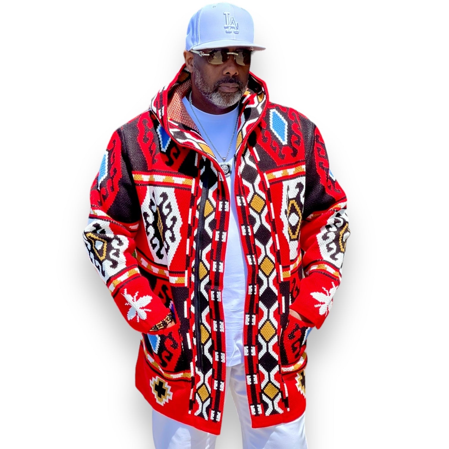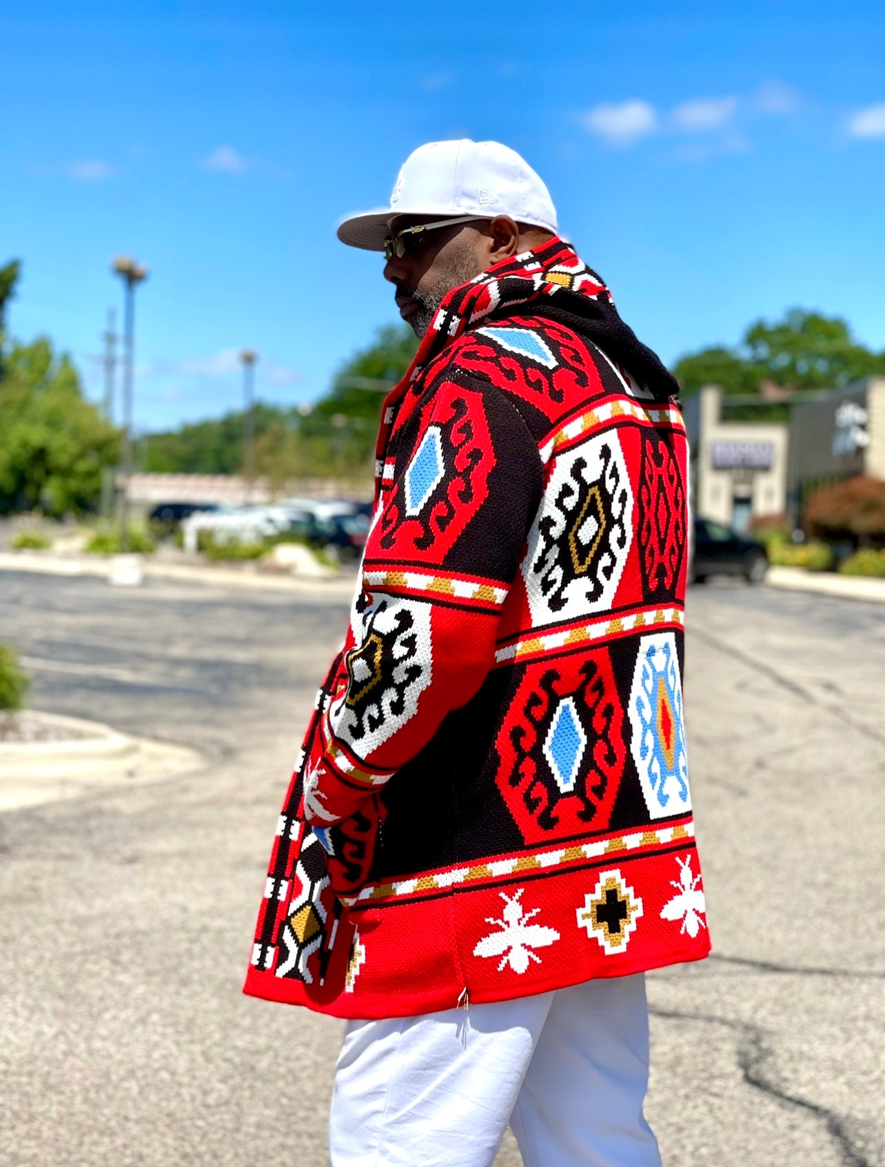 OIM "Canvas" Cardigan 3/4 Length Sweater Jacket (Red)